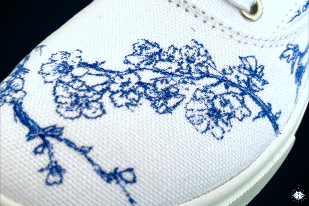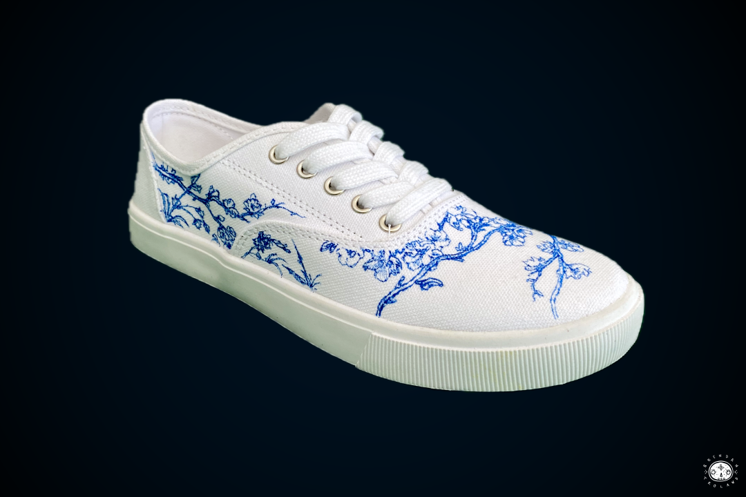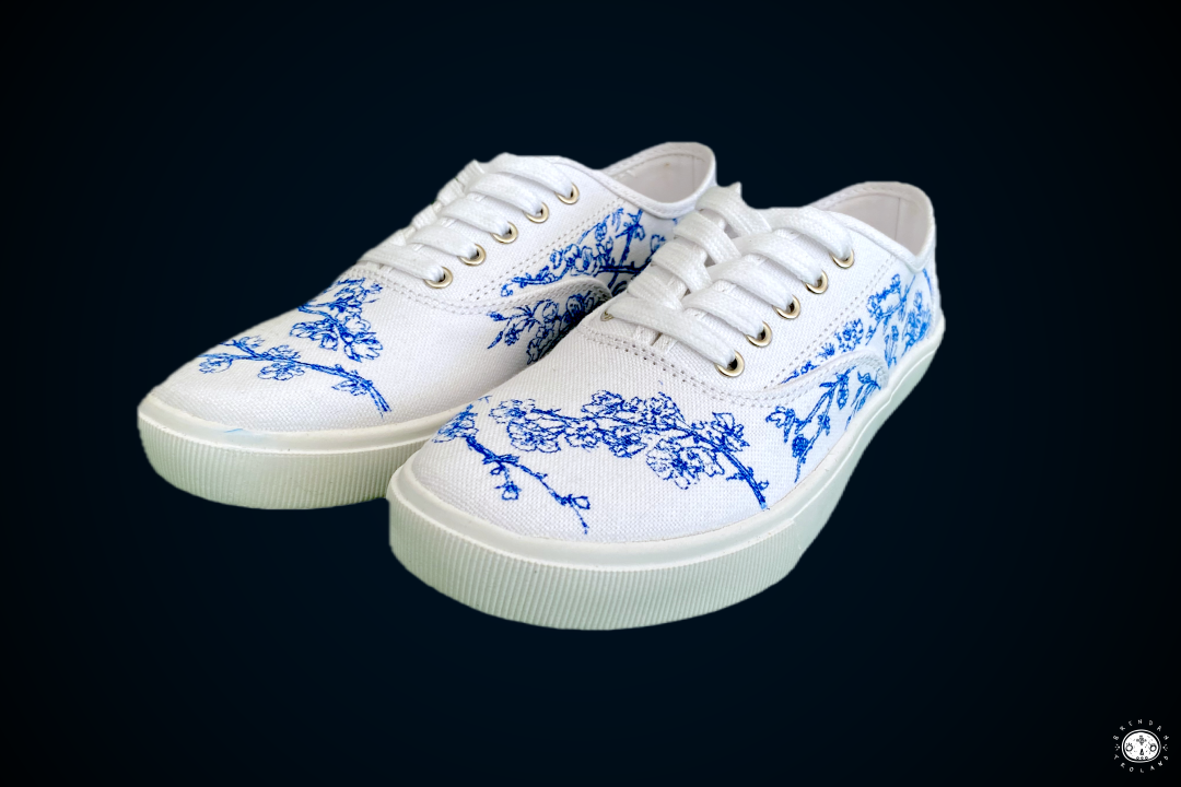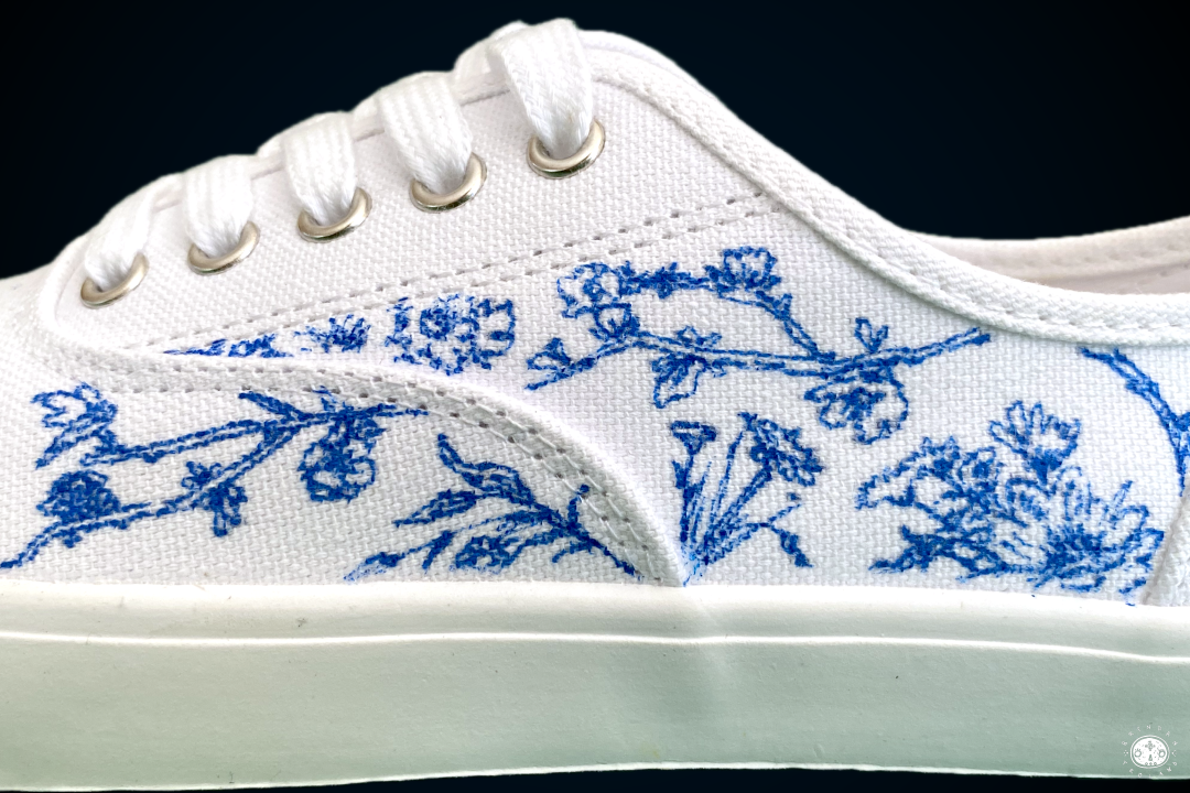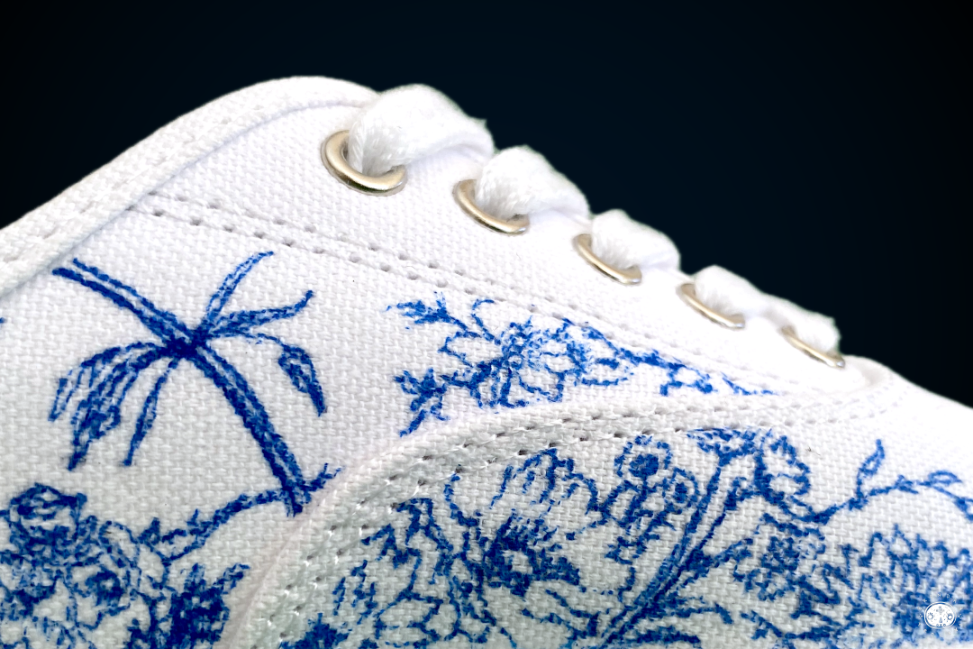 Custom illustrations and fashion design for white canvas shoes.